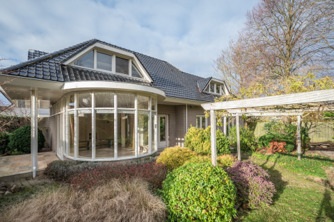 -Diepe achtertuin met zij-uitgang, met gezellige terrassen voor- en achterin de tuin, een jacuzzi en een groot tuinhuis met sfeervolle overkapping. Deze buitenruimte is o.a. v.v. sedumdak, elektra en tv- aansluiting;